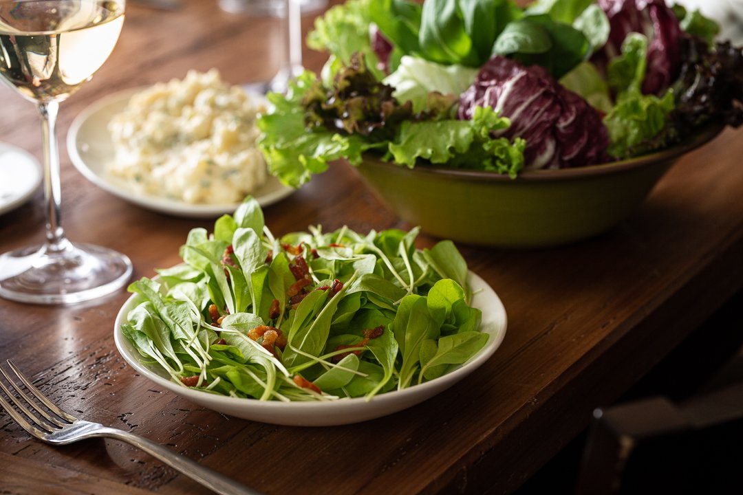 O cardápio é complementado com saladas de três tipos: radicci com bacon, salada de folhas e maionese de batata. O jantar segue com galeto al primo canto, polenta frita e brustolada (na chapa) e queijo à dorê. O frango é douradinho e bem temperado é assado na brasa de carvão e chega à mesa quantas vezes você pedir.