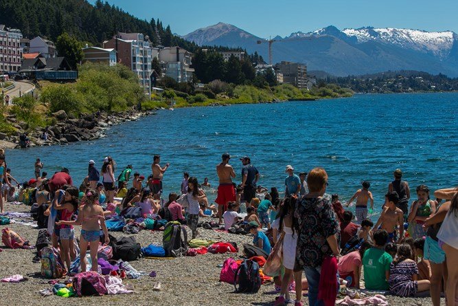 Verão em Bariloche. Céu sem nuvens. Água transparente em um lago com água espelhada. São 5 horas da tarde e ainda há mais de quatro horas até o pôr do sol. É uma cena comum em qualquer praia de Bariloche. Existem dezenas de cenários diferentes, muito próximos uns dos outros. Como viajar muitos destinos de verão, em pouco tempo. Para a família ou os solitários. Em silêncio ou com música. Para nadar ou contemplar.