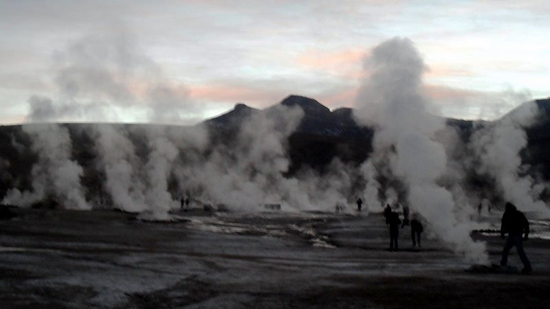 O ponto mais desafiador do Deserto do Atacama é o El Tatio, a 4.300 metros de altitude. Seus famosos gêiseres só são visíveis em sua magnitude durante o amanhecer e algumas horas depois. Por isso, os passeios para o local saem no meio da madrugada de San Pedro de Atacama para chegar ao local por volta das 6h. El Tatio é terrivelmente frio antes do sol aparecer, cerca de – 15ºC.