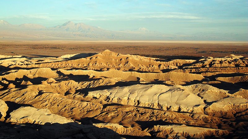 O Deserto do Atacama, o mais árido do mundo, conta com uma paisagem fascinante graças a um fenômeno curioso: As correntes marítimas do Oceano Pacífico não conseguem passar para o deserto, por causa da altitude. Assim, quando se evaporam, as nuvens úmidas descarregam seu conteúdo antes de chegar ao deserto, podendo deixá-lo sem chuva por longos períodos. Sua aridez é incrível. Atualmente, o índice pluviométrico é de 33 milímetros por ano, o equivalente a um dia de chuva por ano.
