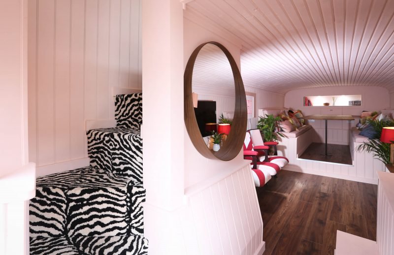 O ônibus de dois andares possui uma área de estar com ícones do Reino Unido em rosa e do famoso quarteto, como o luminoso escrito “Girl Power”, e está repleta de revistas e CDs vintage dos anos 1990 para ajudar a recriar a atmosfera da década. Já no andar de cima, há um closet e um quarto confortável para os hóspedes que vão chamar o Spice Bus de lar naquela noite.